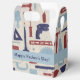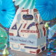 Gable-style favour box with an image of an assortment of red, navy and light blue tools on cream encircled with a customisable blue ribbon. See the entire Father' Day Favour Box collection in the PARTY FAVORS section.
