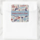 Square sticker with an image of an assortment of red, navy and light blue tools on cream. Blue ribbon across the middle has a customisable sentiment. See matching confetti, favour box, favour tag, gift bags, label and wrapping paper. See the entire Father’s Day Sticker collection in the INVITES | Stickers & Labels section.