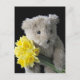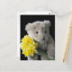 nice illustration of a teddy bear holding a yellow flower. good quality postcard durability. good quality printing