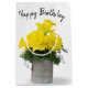 A bright yellow daffodil flower bouquet in a vintage tin cup on white background for Birthday.