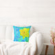 This throw pillow flaunts a digital collage made up of several layers of paintings, textures and scans. The sunny daffodil "pops" off the blue backdrop.