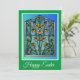 A digital image of a stained glass window featuring a cheerful daffodil design.