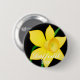 Customise-able button has a large full open Yellow Daffodil covering nearly the entire button with Black background and text at bottom. Shown in standard size. Pin back.