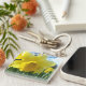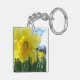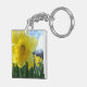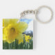 Double sided Daffodil flowered square key-chain. Spring is in the air with this pretty flowered design. Bright yellows among the lush thin stems and the blue and white sky background.