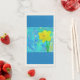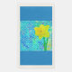 This paper guest towel flaunts a digital collage made up of several layers of paintings, textures and scans. The sunny daffodil "pops" off the blue backdrop.