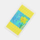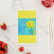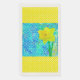 This paper guest towel flaunts a digital collage made up of several layers of paintings, textures and scans. The sunny daffodil "pops" off the blue backdrop. Cheerful yellow and white polka dots form a frame at the top and bottom.