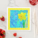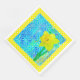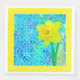 This paper napkin flaunts a digital collage made up of several layers of paintings, textures and scans. The sunny daffodil "pops" off the blue backdrop. Cheerful yellow and white polka dots form a frame as a finishing touch.