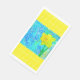 This paper guest towel flaunts a digital collage made up of several layers of paintings, textures and scans. The sunny daffodil "pops" off the blue backdrop. Cheerful yellow and white polka dots form a frame at the top and bottom.