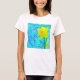 This t-shirt flaunts a digital collage made up of several layers of paintings, textures and scans. The sunny daffodil "pops" off the blue backdrop.