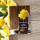 Say thanks and show your appreciation after your March, April or May spring time bridal shower or marriage with the charming Yellow Daffodils and Cowboy Boots Country Wedding Flat Thank You Note. These pretty custom rustic chic thank you notes feature a quaint floral photograph of brown leather western cowboy boots filled with yellow narcissus flower blossoms with a bridal veil and barn wood on white satin. Perfect inspo for a casual barn party or farm ranch style marriage ceremony and reception.