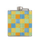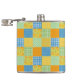 A pretty Vinyl-wrapped Hip Flask, with a faux-patchwork pattern of Daffodil prints, with Polka Dots and Check Ginghams in green, orange, yellow and blue and white. Part of the Posh & Painterly 'Daffy-down-Dillies' collection.