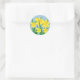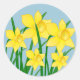 Round sticker shown with a cute daffodil flowers print. Customise this item or buy as is.