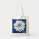 A photo of a Dahlia, 'David Howard' variety treated with a vintage style Cyanotype effect creating a subtle blue tone with an antique white. A style reminiscent of antique china and technical blue prints.