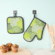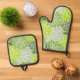 Dahlia Flowers, Pattern Of Flowers, Green Dahlia Oven Mitt & Pot Holder Set