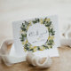 This thank you card features a cute watercolor lemon wreath with white flowers and a fun handwritten font. This thank you is the perfect addition to your gender-neutral citrus fruit themed baby shower, wedding, bridal shower, or any other event.