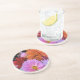 Brighten the day with this glorious coaster featuring a collection of waterlily dahlia blossoms in a colourful design of pink, orange and red.
