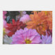 Brighten the day with these glorious American MoJo kitchen towels featuring a collection of waterlily dahlia blossoms in a colourful abstract pattern of pink, yellow, orange, red, white and mauve.