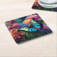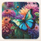 Dahlias And Iridescent Blue Green Butterfly Square Paper Coaster
