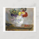 A fine art postcard with the painting by the French artist Berthe Morisot (1841-1895) titled, Dahlias (1876). An impressionist still life with a porcelain urn full of red, yellow and purple dahlia flowers on a bureau.