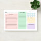 Practical and post-it notes for your daily planning with colorblocks in pastel colours with a practical to do list with check boxes, space to write down important things to remember, plan your meals, jot down your appointments, and note how many glasses of water you've had in the day!