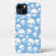 A pattern of random skulls in a dainty blue and white colour scheme.