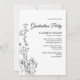This dainty elegance graduation party invitation card is perfect for a minimalist grad party. The floral design features a simple and elegant arrangement of delicate black and white wildflowers paired with a romantic calligraphy font. Personalise the back with a photo and graduation year.
