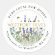 Honeybee with local wildflowers --such as camomile, lavender, daisy, cornflower, Queen Anne's lace-- enclosed in a simple gold circular frame. Apiary name displayed in the centre of label in a casual script font.