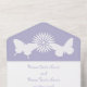 Bring touch of spring whimsy to your event with this all-in-one wedding invitation and RSVP card. On the inside you will find the white silhouette of a swallowtail and monarch butterfly, flanking a daisy on a pastel lavender background above a section with some sample text that can be customised for your special day. The lower section of the invite features a removable, postcard sized piece that has some sample RSVP text sitting above a lavender purple border with a pattern of butterflies and daisies dancing across the bottom. Outside, a similar border of daisies and butterflies on pale lavender can be found below the areas where you would add stamps, standard, and return addresses for both the invitation as a whole and the returnable RSVP section. The flap used to fold over and seal the card has the butterflies flanking the daisy on a pastel lavender background with a sample set of initials that you can customise for a final personal touch. Be sure to check out the rest of the Daisies and Butterflies in Lavender set for other coordinating products, including return address labels.