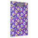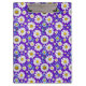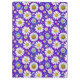 A colourful seamless pattern featuring daisies with yellow centres, blue leaves, and a vivid purple background. Perfect for spring themes, textile designs, and cheerful digital or print crafts.