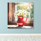 Daisies In Red Pitcher By Sunny Window Canvas Print