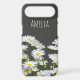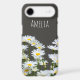 Modern stylish, personalised phone case with sunny daisies on dark grey background.