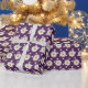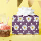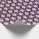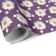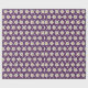 White polka dots on purple quilted stitch background with white daisy flowers.