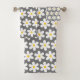 Daisies Retro Floral Pattern White Grey Bath Towel Set
