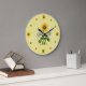 Bright and cheerful yellow and white daisies adorn this beautiful wall clock. Yellow background is a faux handmade paper look. Artwork by Trina Clark