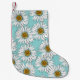 Daisies White Flowers on Blue vintage Seamless Pat Small Christmas Stocking