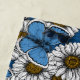 Common blue butterflies and daisy flowers on a blue background