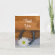 Customise the charming White Daisy and Horseshoe Country Western Thank You Note Card with your own personal message of thanks, gratitude and appreciation for gifts received after a casual yet classy ranch style bridal shower, engagement barn party or marriage theme. This informal and elegant custom equine theme thank you note features a quaint floral photograph of a white daisy flower blossom, rusty horseshoe, pearl necklace and a white bridal veil with a weathered brown barn wood background.