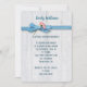 Aqua ribbon with white polka dots and orange daisy on whitewashed wood for birthday party invite