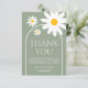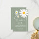 This charming baby shower thank-you card features hand-drawn daisies on a sage green arch background, paired with stylish typography. Perfect for a baby shower of either a boy or girl. Original Drawing © Michele Davies.