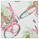 Daisy Basket Retro Pink Bicycle Pattern Fabric