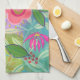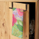 Brighten the kitchen with this cheerful, floral, abstract painting of three pink flowers in a jungle of layered leaves.