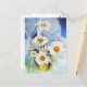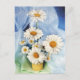 Lovely white Daisies on blue and green fabric . Perfect postcard for man or woman on any occasion or just to say hello.