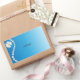 Good packing with cardboard envelope. Shipping with UPS tracking is cool watching it travel around the globe to my door. Gloss finish really good, good adhesive used on the sticker, used it to cover a strange apple logo on my tablet and fairy dust the case. Also have a spare sticker to slap on my car. {;-)