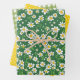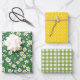Daisies on Green, White Dots on Yellow, Green Gingham Wrapping Paper Sheets (Set of 3)