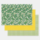 The third sheet boasts a classic green gingham pattern, offering a timeless and versatile design that complements a variety of gift-giving occasions.