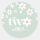 Two! Retro inspired 2nd birthday party stickers with 70's style daisies and boho fonts and colours.