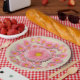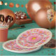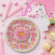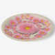 Pink daisy flowers photo paper plates. Add your custom text and background color.