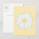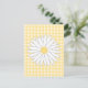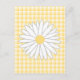 A design featuring a pretty daisy flower with white petals and a yellow centre. The background is a white and yellow gingham check pattern. A nice girly floral design.