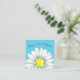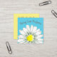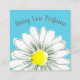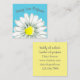 A business card featuring a cheerful shasta daisy flower sketched with pencil and watercolor with white text on a sky blue background with yellow on the back. In the Language of Flowers the daisy represents cheerfulness and innocence.