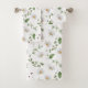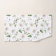 This gorgeous floral print bath towel set features daisies and greenery on a crisp and clean white background.